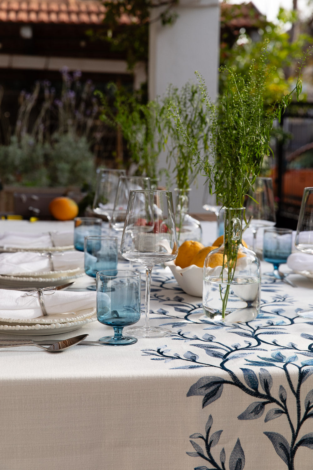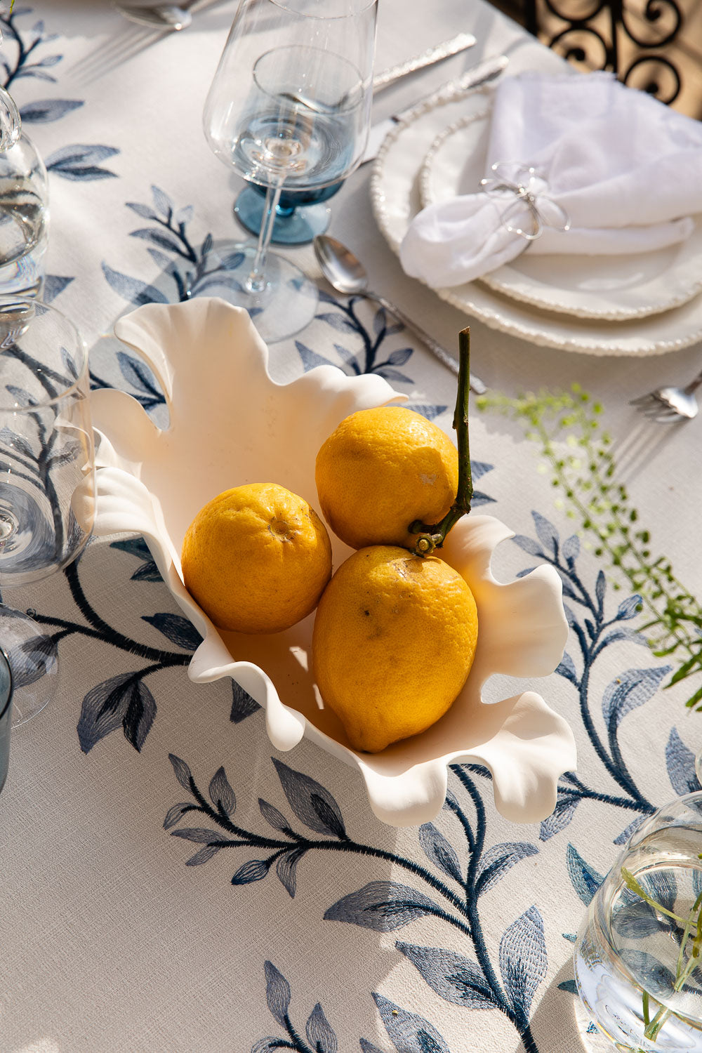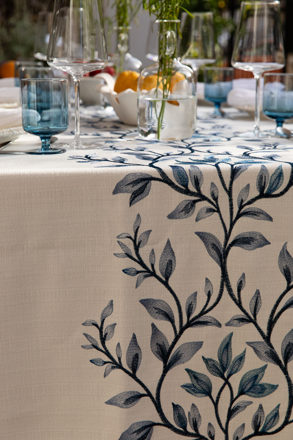 מפה רקמת ראנר עלים כחול