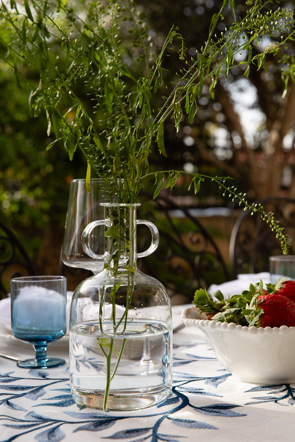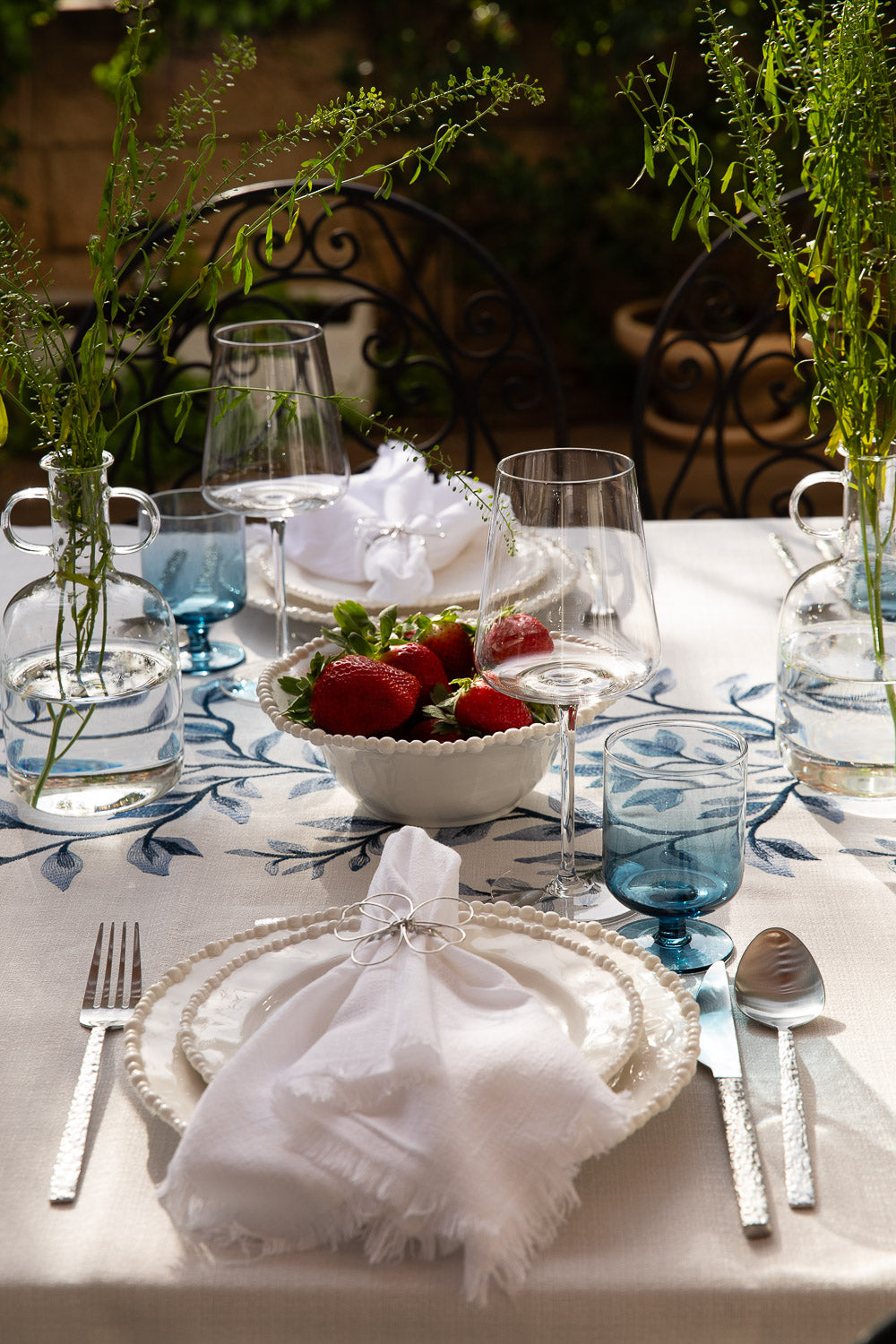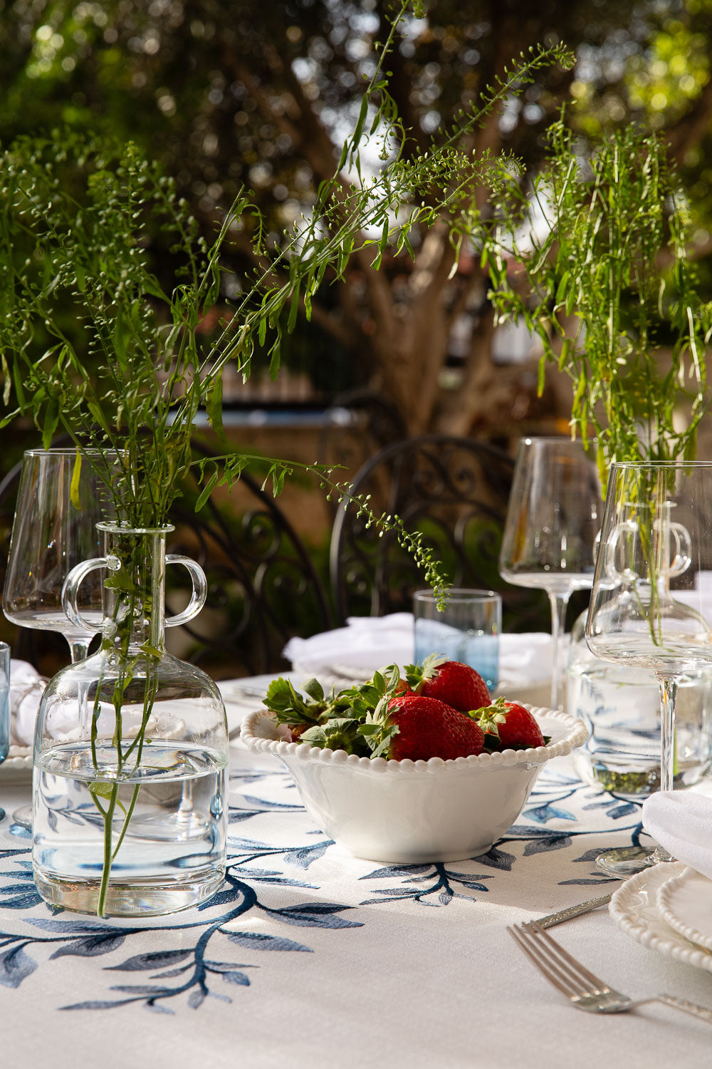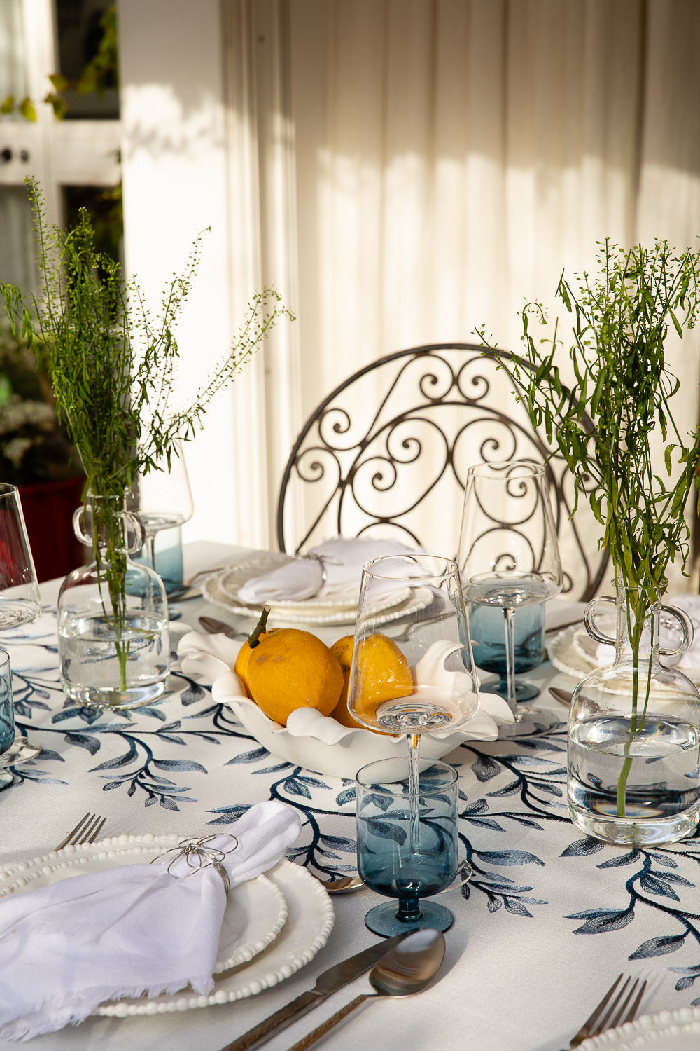 מפה רקמת ראנר עלים כחול