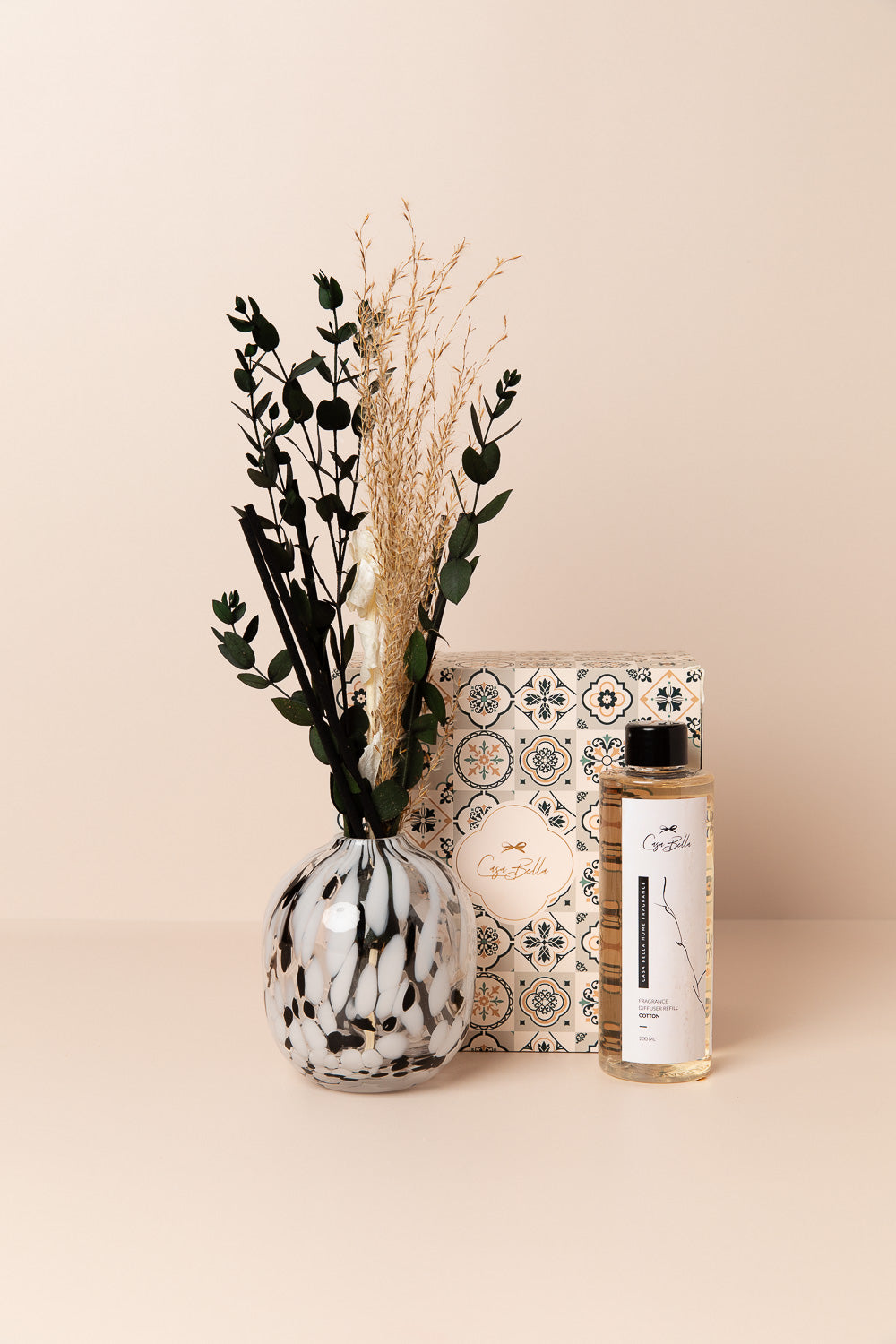 מקלות בגוון שחור, בקבוק מילוי 200 מ"ל לבחירה וזר ענפים אוליב
