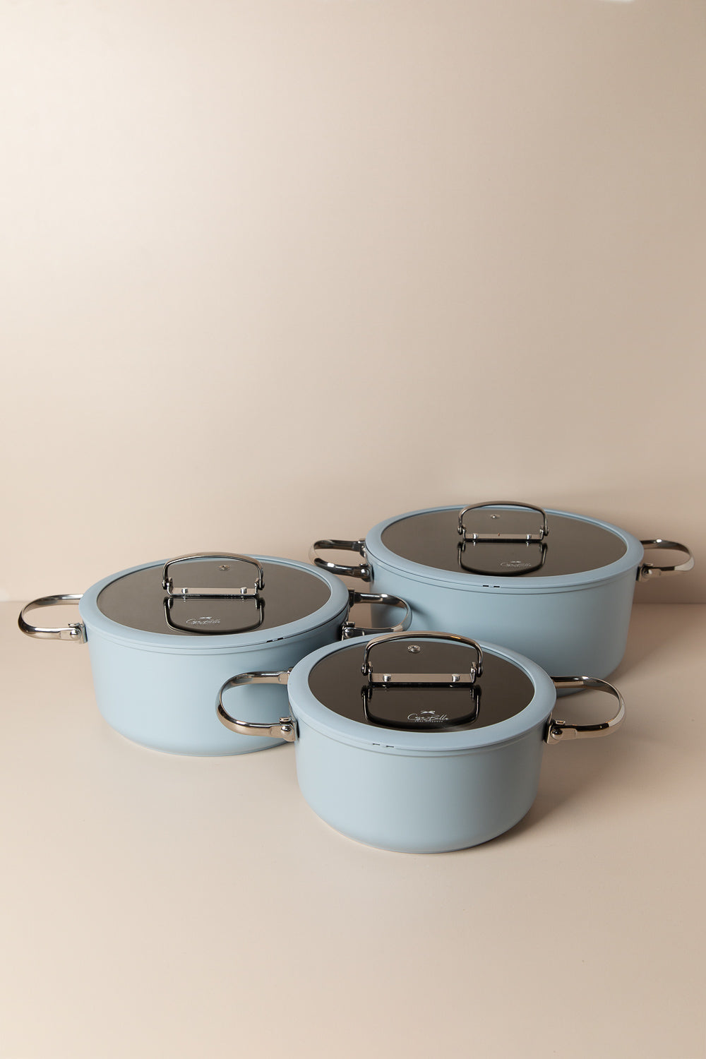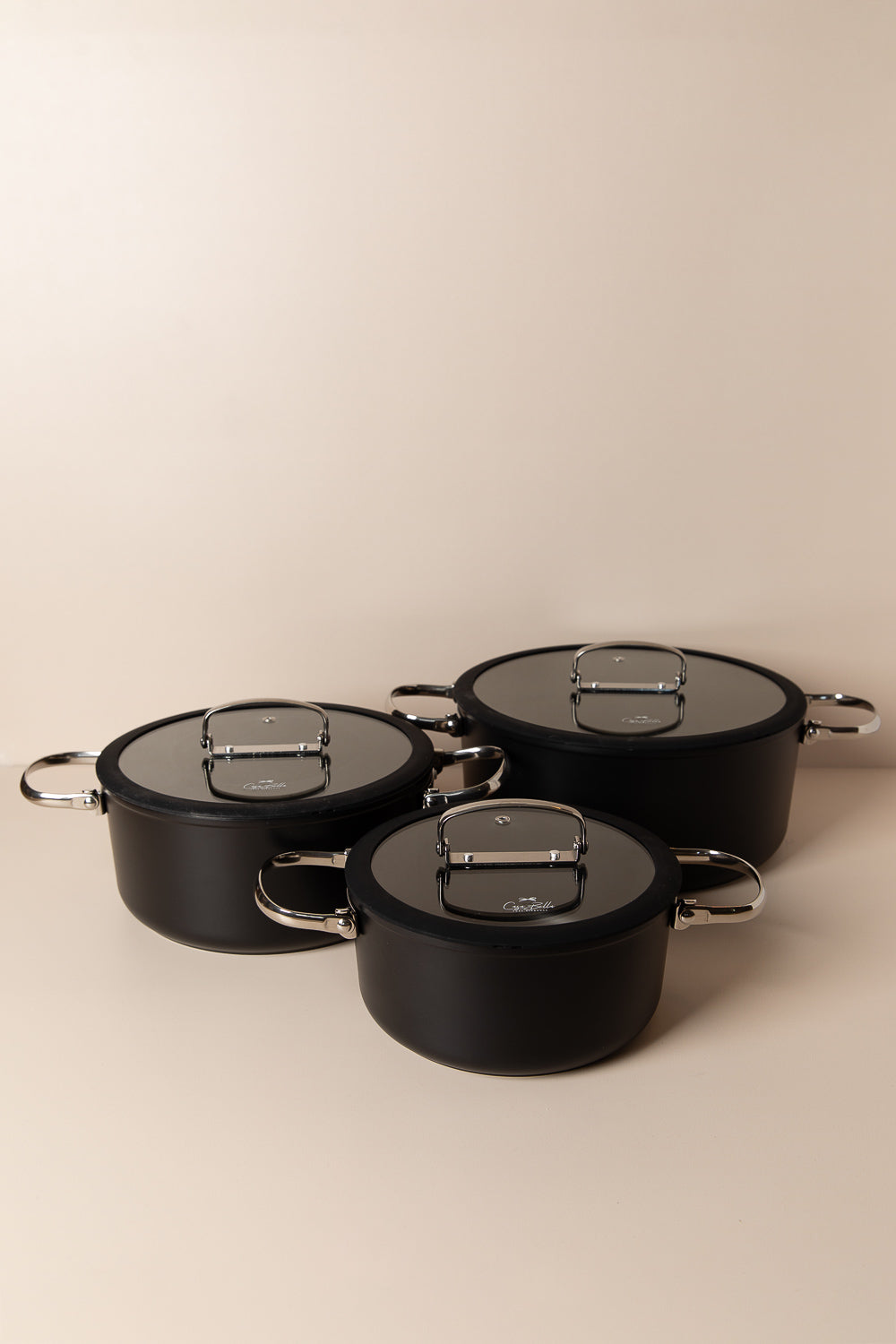 .הסירים נכנסים אחד בתוך השני לחיסכון באחסנה