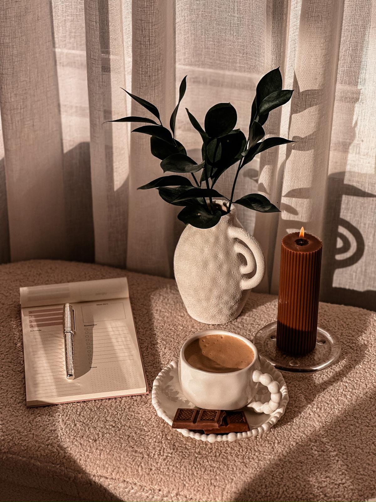 כוס קפה ותחתית פנינים